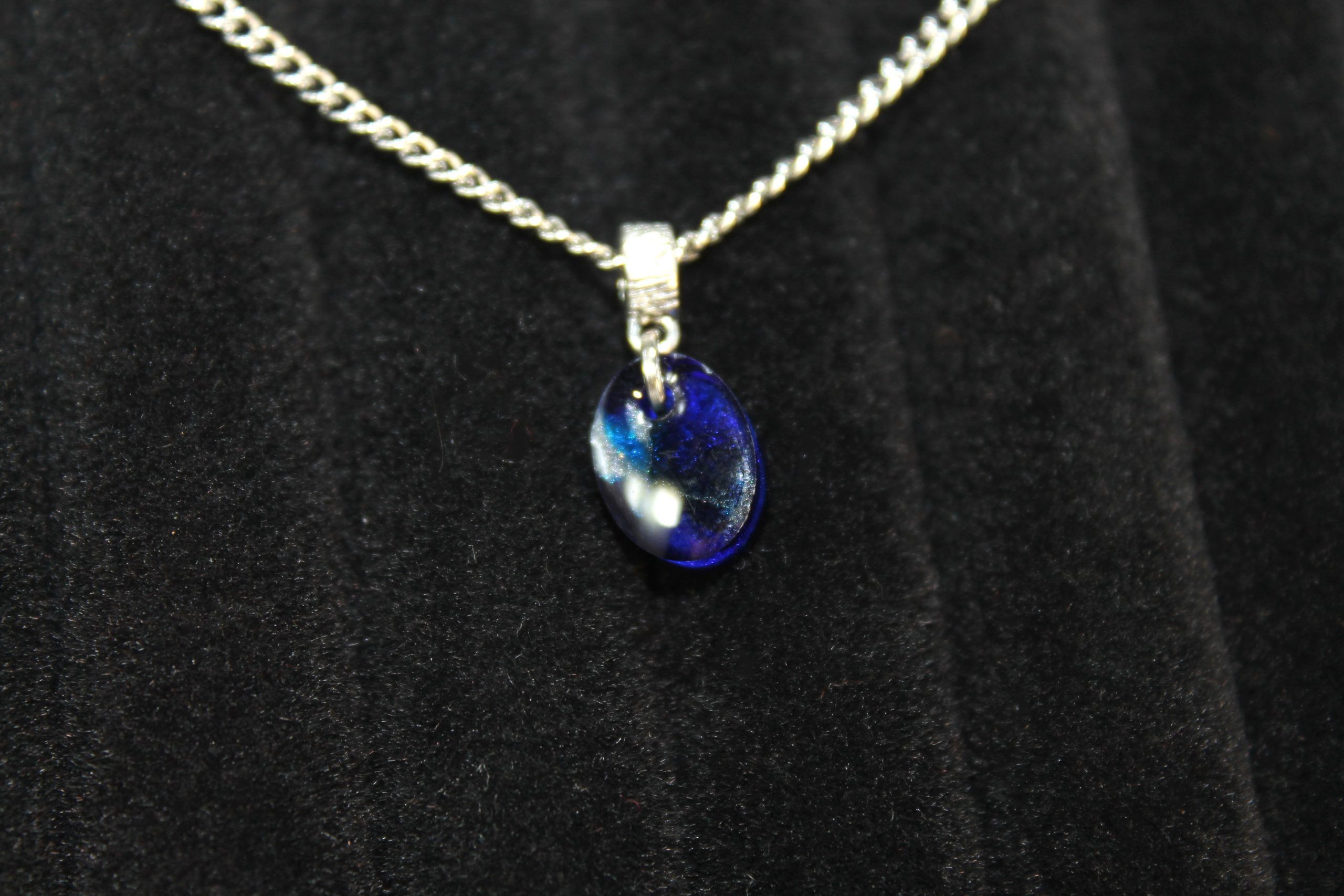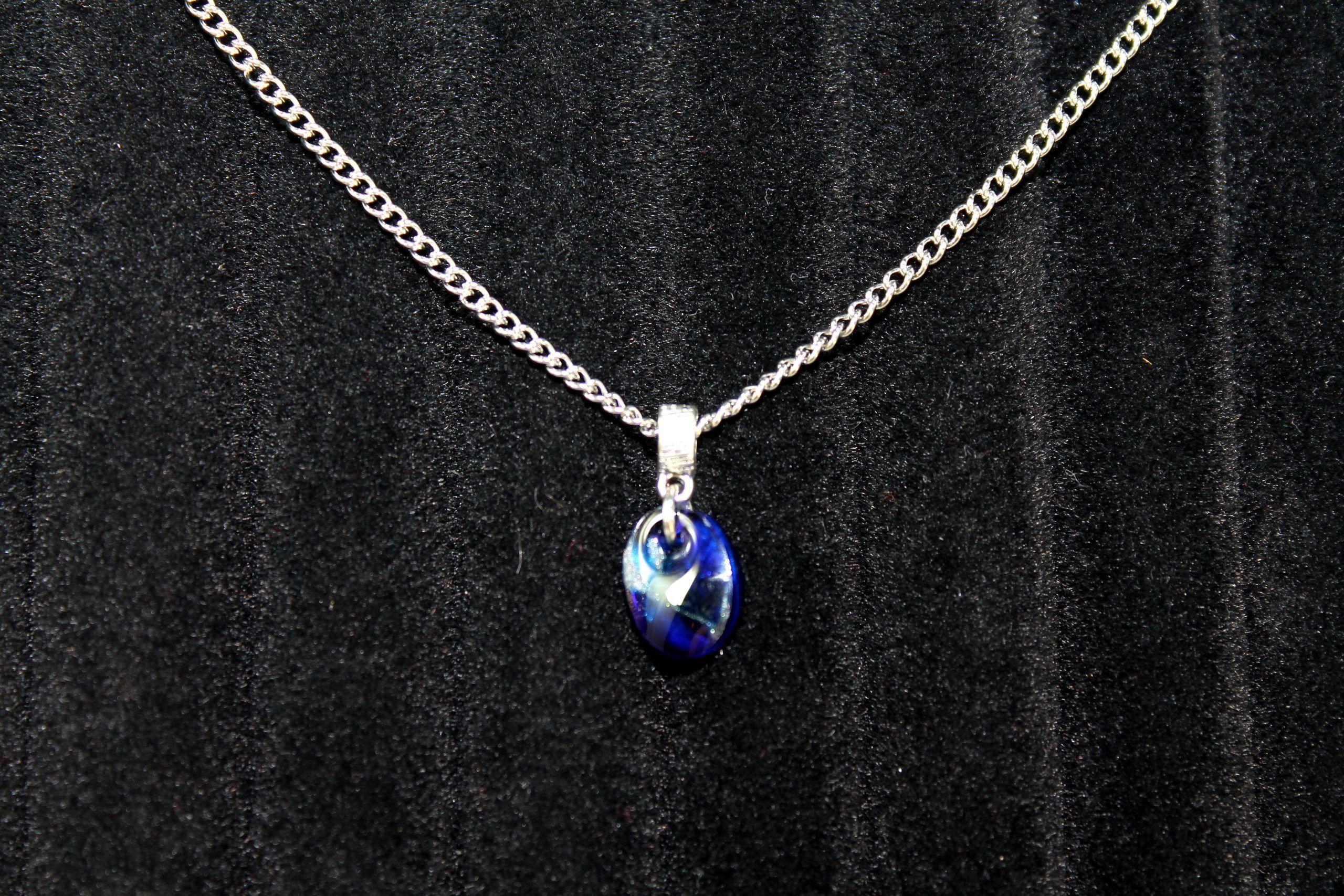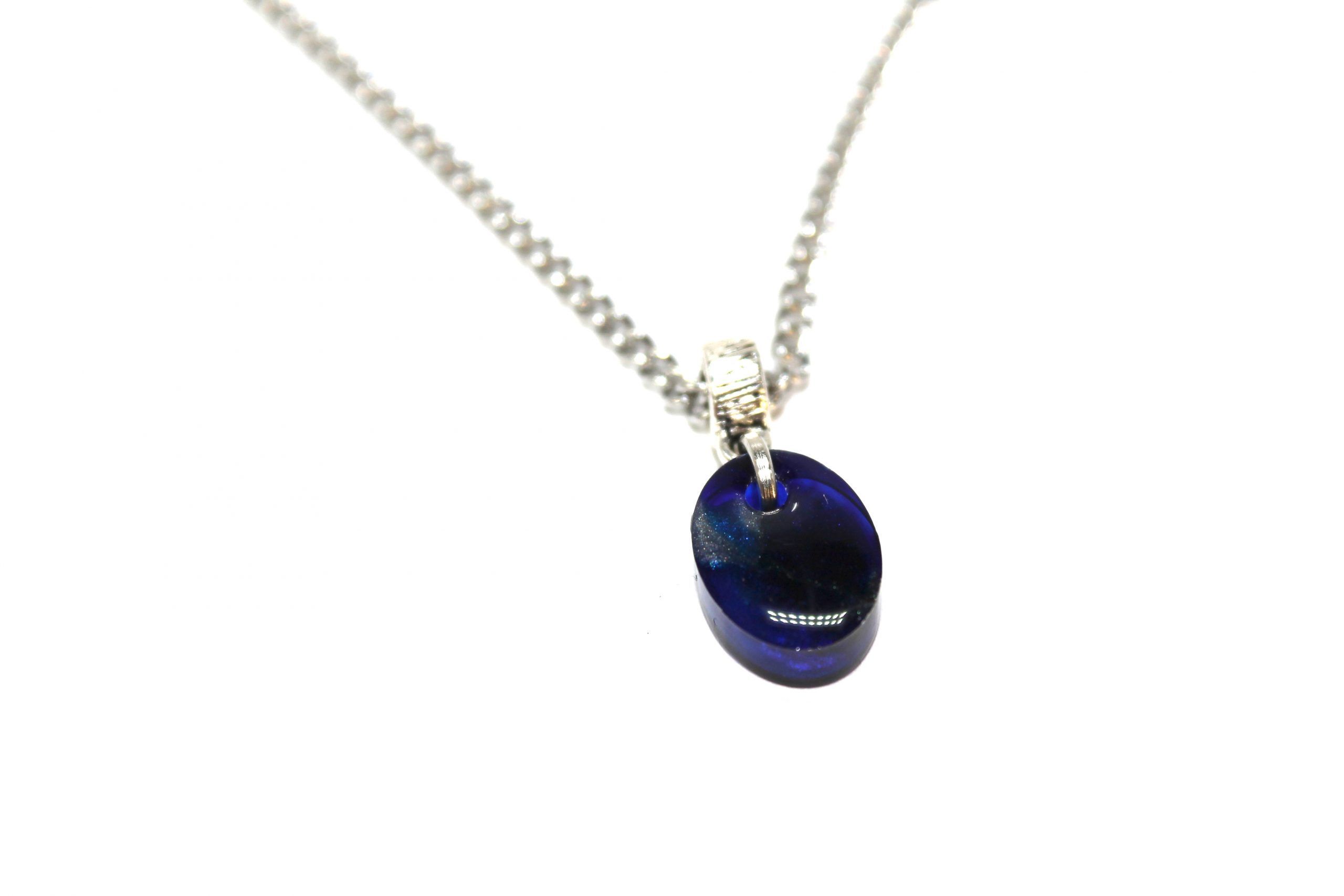 El colgante pequeño y elegante con una combinación de colores muy rica: negro, azul y plata.